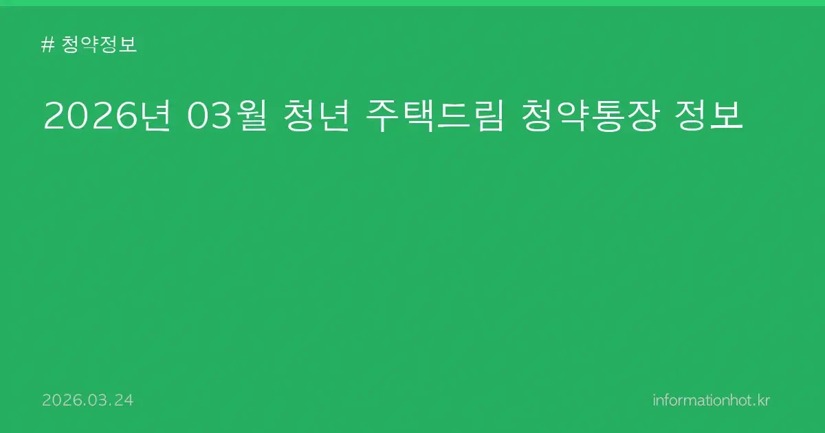 청년 주택드림 청약통장은 청년층의 주거 안정을 도모하기 위해 마련된 제도입니다. 이를 통해 청년들은 더 쉽게 주택을 마련할 수 있는 기회를 갖게 되며, 다양한 국민임대주택에 청약할 수 있는 자격을 부여받습니다. 이 글에서는 2026년 3월에 진행되는 청약 공고와 신청 방법, 자격 요건 등을 소개하겠습니다.